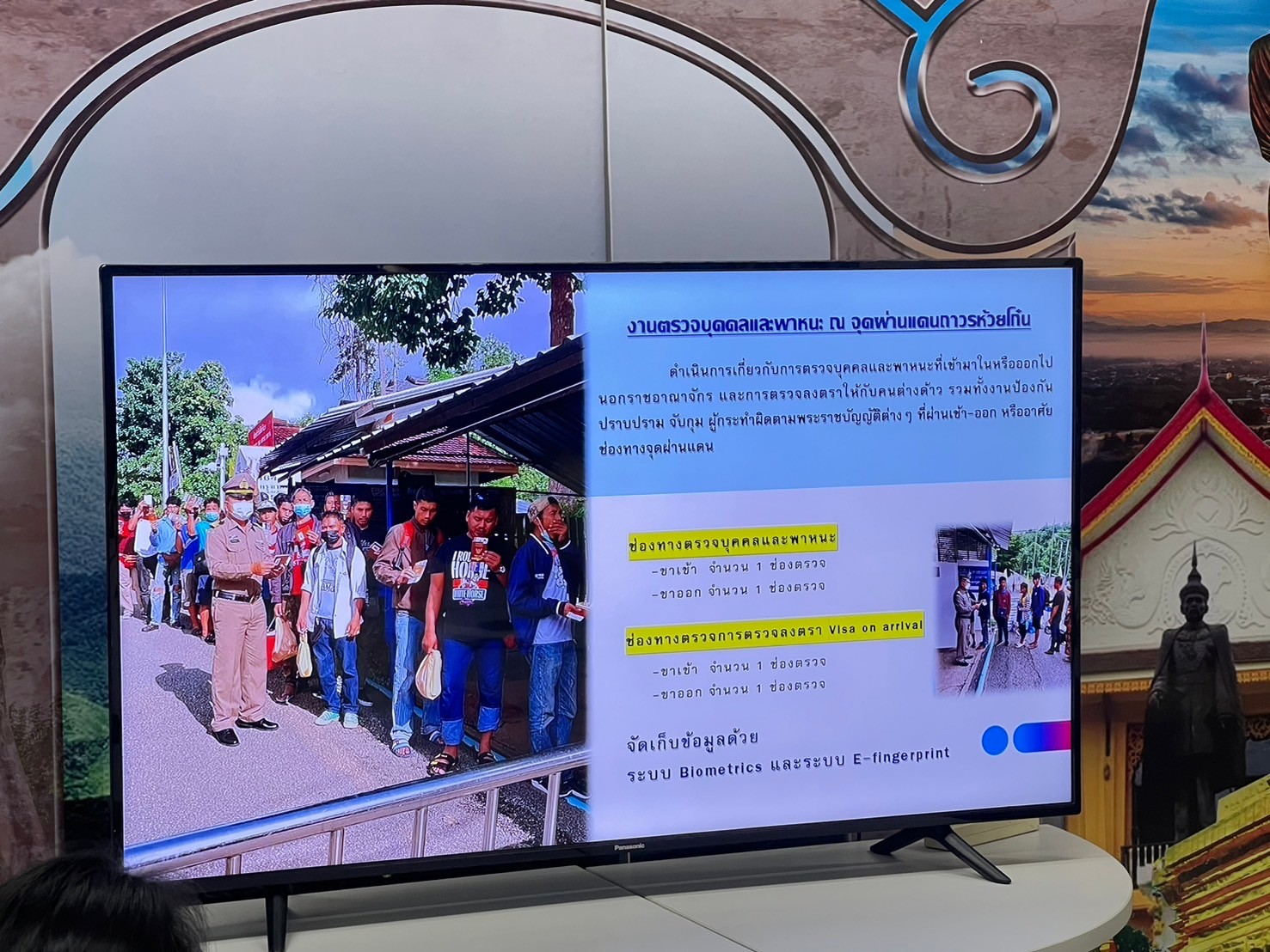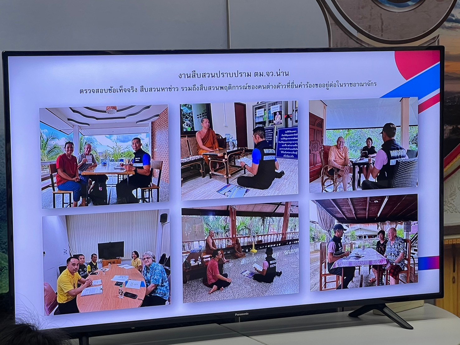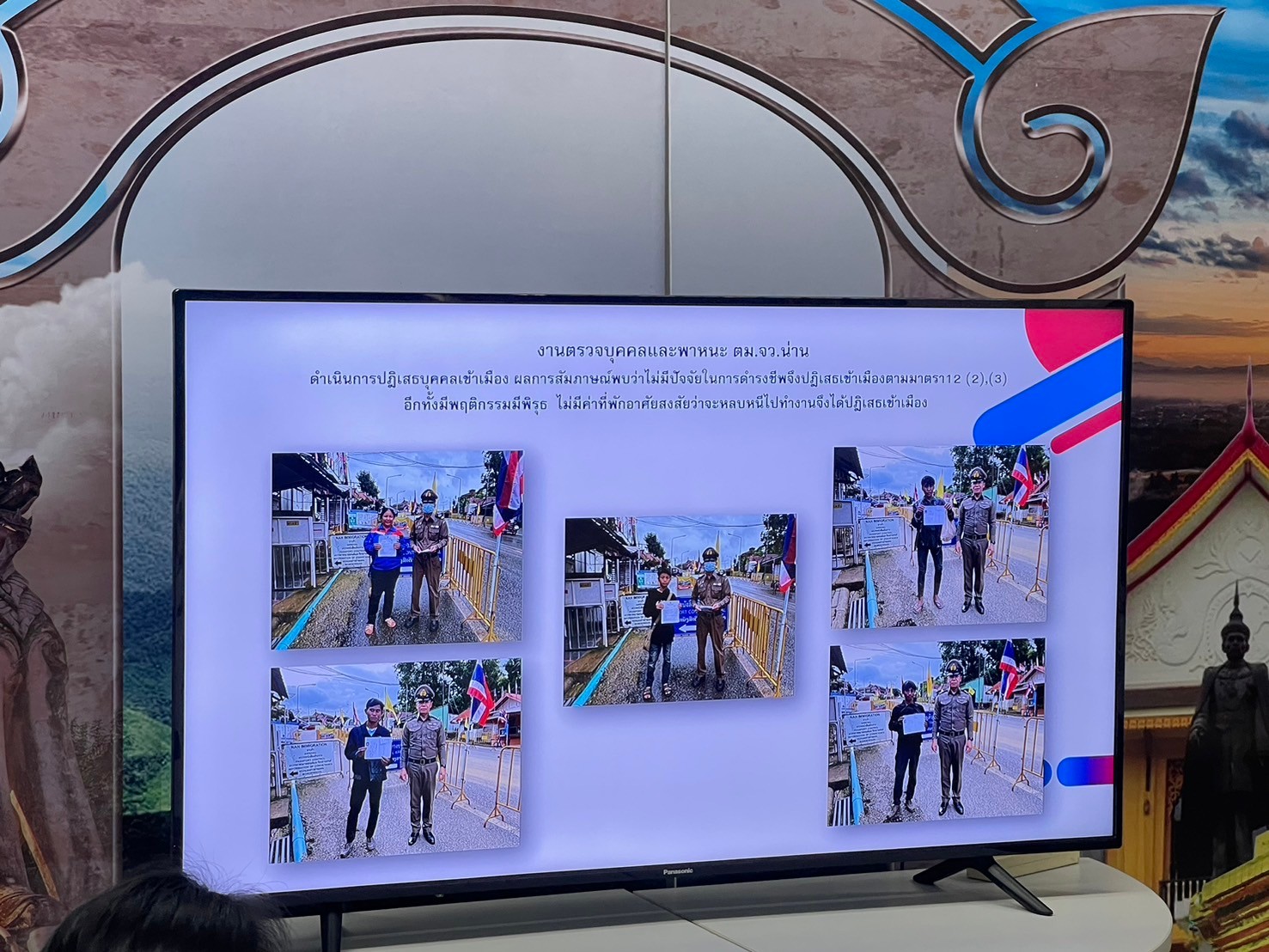 ที่เน้นแก้ปัญหายาเสพติด ผสานความร่วมมือภาครัฐ และภาคประชาชน ตัดวงจรผู้ค้า รักษาผู้เสพ คืนสู่อ้อมกอดชุมชน รวมถึงการศึกษาดูงานที่ตรวจคนเข้าเมืองจังหวัดน่าน (ตม.น่าน) และได้เห็นการบริการประชาชนอย่างรวดเร็ว โดยเฉพาะในเรื่องการขออนุญาตพำนักในรูปแบบต่างๆที่เจ้าหน้าที่ได้จัดทำแฟ้มเอกสารตัวอย่างกรณีการเข้าเมืองต่างๆ เพื่อให้ประชาชนสะดวกต่อการกรอกข้อมูลต่างๆ