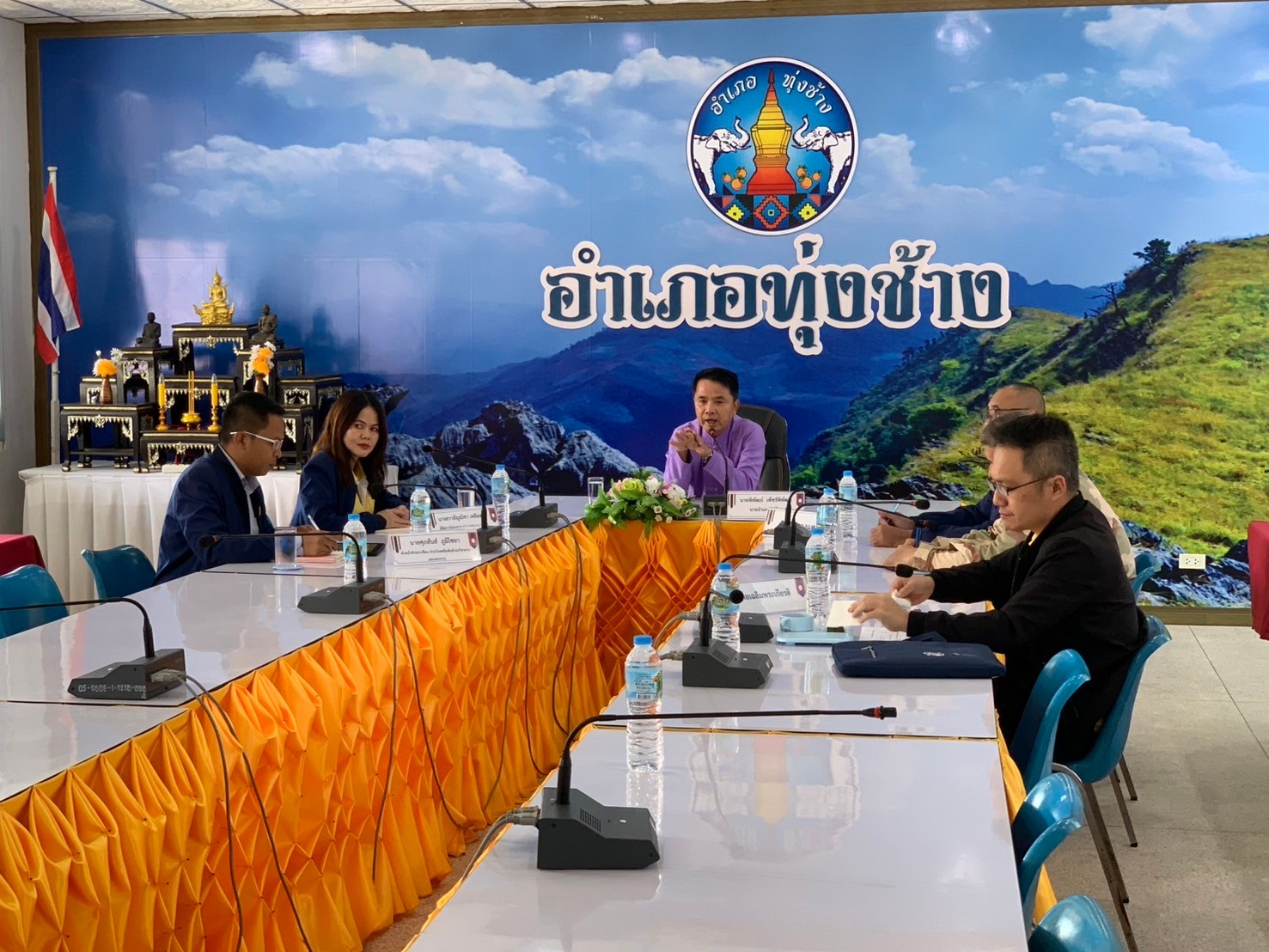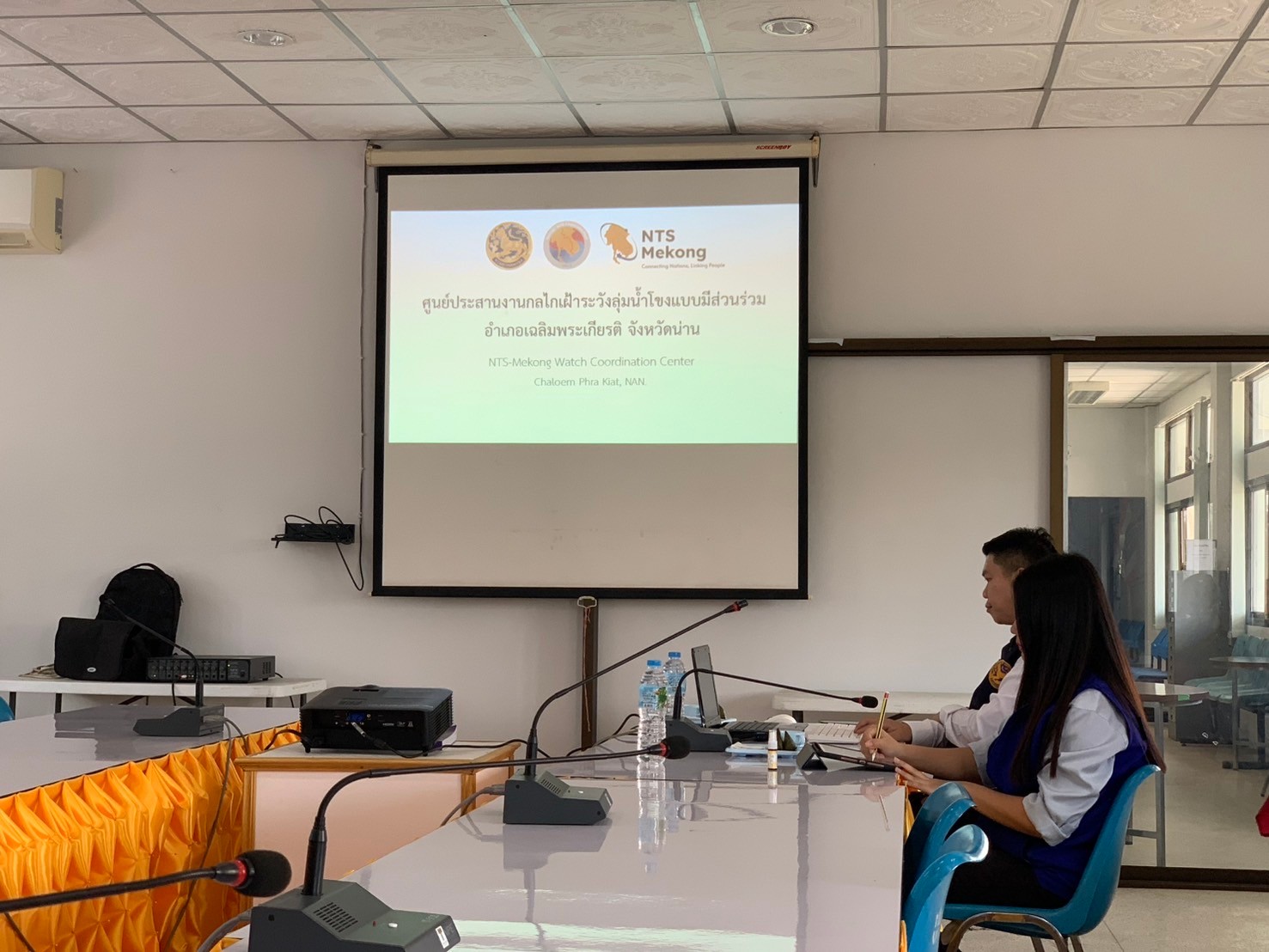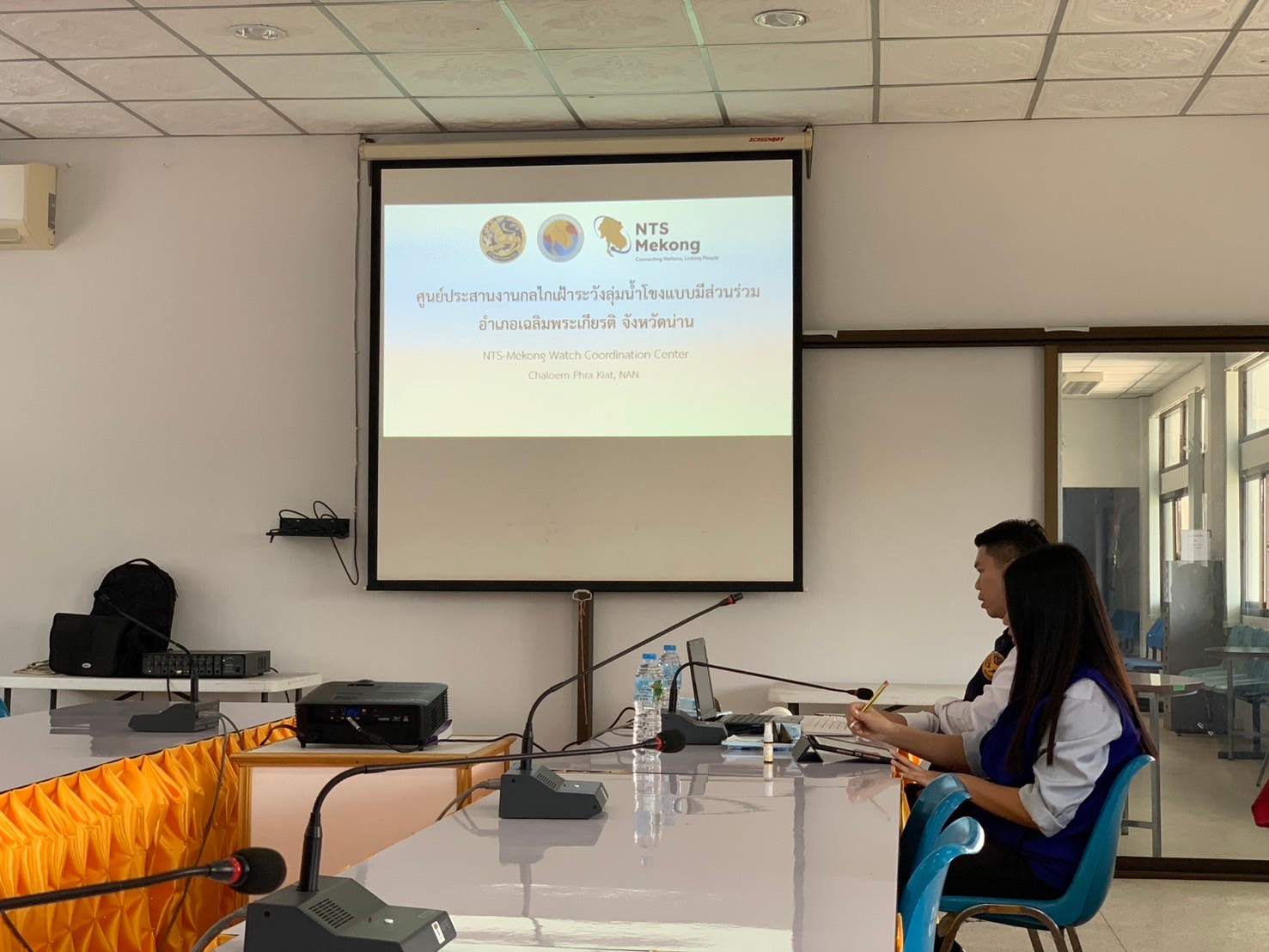 โดยทีม ศปล.ได้มีการประชุมเพื่อรับฟังการดำเนินโครงการ NTS-Mekong Watch โดยมีท่านนายอำเภอทุ่งช้าง และ ปลัดฝ่ายความมั่นคง ของ อ.สองแคว และ เฉลิมพระเกียรติ ให้ข้อมูลอย่างพร้อมเพรียง