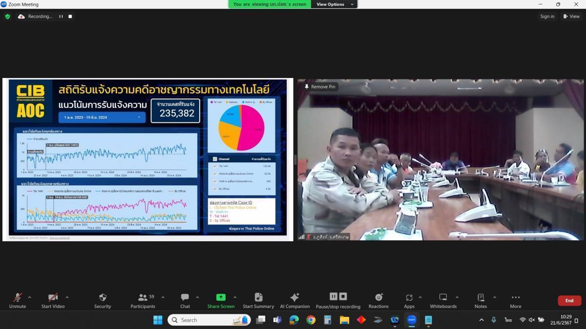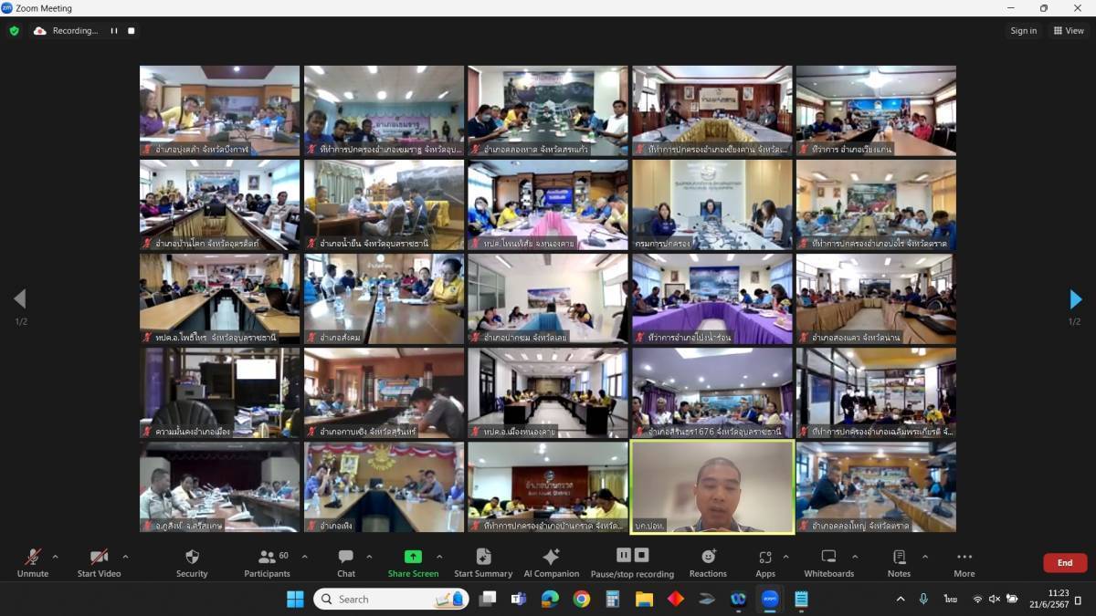 21 มิถุนายน เวลา 10.00 น. ภายใต้การอำนวยการของ นางวจิราพร อมาตยกุล ผอ.วช. ได้มอบหมายให้ นางสาวสุขุมาลย์ วิริโยธิน ผอ.สวท.และคณะเจ้าหน้าที่ศูนย์ประสานงานโครงการเสริมสร้างความสัมพันธ์ระหว่างประชาชนกับประชาชนเพื่อรับมือกับความท้าทายด้านความมั่นคงรูปแบบใหม่ในภูมิภาคลุ่มน้ำโขง (ศปสล. )จัดการอบรมออนไลน์เพื่อเสริมสร้างความรู้เท่าทันภัยความมั่นคงรูปแบบใหม่ในภูมิภาคลุ่มน้ำโขง ผ่านการประชุมระบบทางไกล (Zoom Meeting )โดยมี บุคลากรสังกัดกรมการปกครอง กำนัน ผู้ใหญ่บ้าน และ เจ้าหน้าที่ฝ่ายความมั่นคง ในอำเภอเป้าหมาย 44 อำเภอ ชายแดนไทย -ลาว ไทย-กัมพูชา เข้าร่วมอย่างพร้อมเพรียง