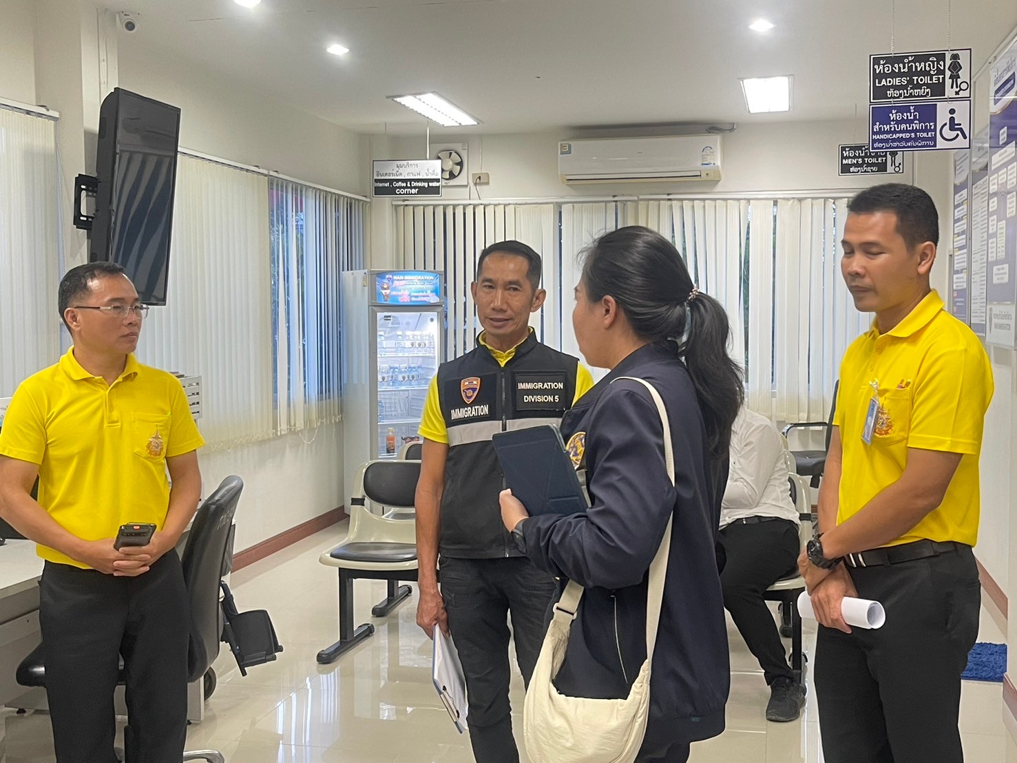 The team also visited the Nan Immigration Office, observing efficient public services, particularly regarding residence permits. Officers provided sample case files to assist citizens in filling out forms accurately and conveniently.